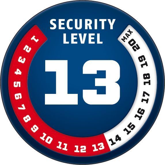 Kilit, bir ABUS Extra Classe silindiri ile donatılmıştır ve kodlanmış bir ters çevrilebilir anahtar ile birlikte gelir.