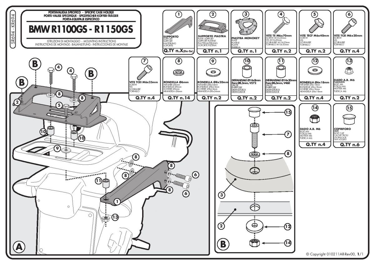 BMW R 1100 GS (94 > 99) ve R 1150 GS (00 > 03) için Arka Çanta Taşıyıcısı